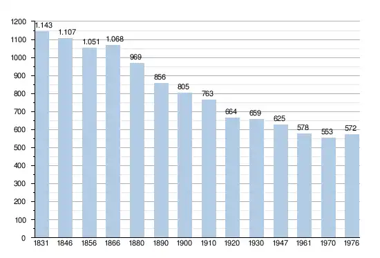 - Sources : INS, Rem. : 1831 jusqu'en 1970 = recensements, 1976 = nombre d'habitants au 31 décembre.