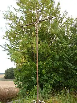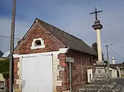 Calvaire au bord de la D 23 en direction de Wavignies, avec repère de nivellement.