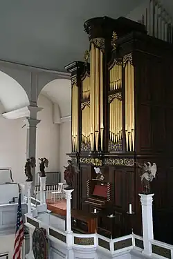 - ↑ (en) Dudas, « All About Old North Church's Organ » [vidéo], sur YouTube – Chaîne officielle de l'Old North Church du site historique, Old North Church & Historic Site, (consulté le ) : « [De 0:33-1:46...L'histoire de l'instrument] Le buffet que vous voyez aujourd'hui est le buffet original des années 1700, entièrement restauré ... L'intérieur de l'orgue est neuf »