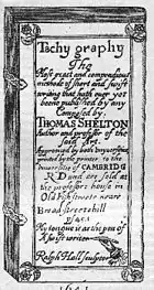 En 1626, Shelton publie une nouvelle méthode de sténographie sous le nom short-writing (traduisible en français par « écriture courte ») et depuis 1635 sous le nom Tachygraphy, l'origine du mot « tachygraphie », « tachy » se prononçant « taqui » et transcrivant un mot grec qui signifie « rapide »[style à revoir]. Ce travail de Shelton a été le point de départ pour beaucoup d'œuvres de sténographie de renommée universelle[réf. nécessaire].