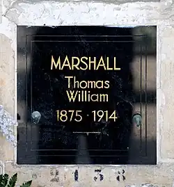 En 1910, Thomas William Marshall épouse Marie-Louise Désagullier[16] qui était sa muse et compagne depuis leur rencontre en 1904[17]. Les peintres André Chapuy et Ernest Yarrow Jones sont leurs témoins de mariage. Il meurt prématurément d'une tuberculose[18] le à 23h30 à son domicile parisien Boulevard du Montparnasse, à l'âge de 38 ans, au moment où il était en pleine possession de son talent. Il aurait laissé plus de 200 toiles[19]. Il est incinéré au cimetière du Père-Lachaise et ses cendres sont déposées au columbarium (87e division, case no 2137).