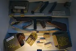 | Alimentation | Magasin droit 20 cartouches, magasin-tambour 50 ou 100 cartouches[69] | Magasin droit de 18 cartouches[53] | Magasin droit 20 ou 30 cartouches, magasin-tambour 50 ou 100 cartouches[69] | Magasin droit 20 ou 30 cartouches[69] | |
