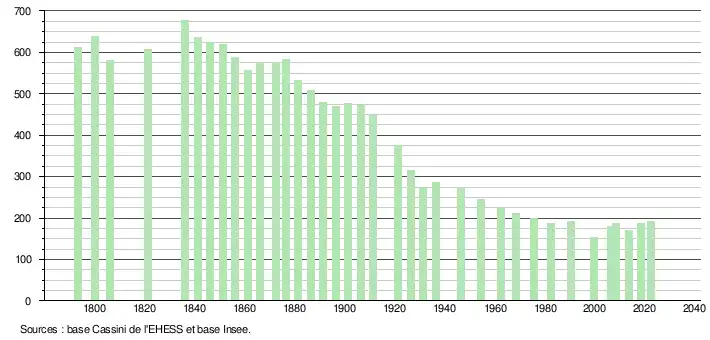 - ↑ Population municipale de référence en vigueur au 1er janvier 2025, millésimée 2022, définie dans les limites territoriales en vigueur au 1er janvier 2024, date de référence statistique : 1er janvier 2022.