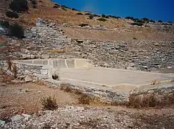 Ce théâtre de 2 700 places est remarquable par son plan semi-elliptique tout à fait unique et par son ancienneté : certains auteurs n'hésitent pas à en faire le premier en date de tous les théâtres grecs.