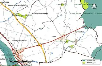 | « Étangs, bocage, landes et forêts de Puisaye au sud du Loing » | type 2[Note 3] | 18 396 hectares | Cette zone s'étend sur 20 communes[DREAL 2]. Son altitude varie entre 145 et 313 m[INPN 4]. Le principal habitat déterminant est celui d'eaux douces stagnantes[INPN 5]. |