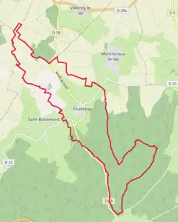 Le ruisseau de Thuillières, d'une longueur totale de 10,8 km, prend sa source dans la commune de Saint-Baslemont et se jette dans la Saône à Bonvillet, après avoir traversé quatre communes[2].