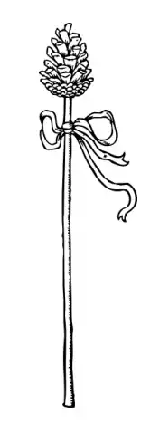 Dans la religion grecque antique, le thyrse est porté par les adorateurs de Dionysos et est un instrument sacré.