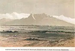 Les villes-oasis de la route de la soie, dont une branche contournait par le nord le désert du Taklamakan du bassin du Tarim, sont situées en contrebas de la face sud des Tian Shan[8]. À Kashgar, situé en Chine, à l'extrême pointe occidentale du bassin du Tarim, cette route coupait à travers les montagnes du Tian Shan en bifurquant vers le nord et vers Bishkek. Un système d’irrigation datant des IIIe et IVe siècles a été retrouvé dans la région par des archéologues, sur environ 200 ha divisés pour la culture du millet, de l’orge, du blé et du raisin[9].