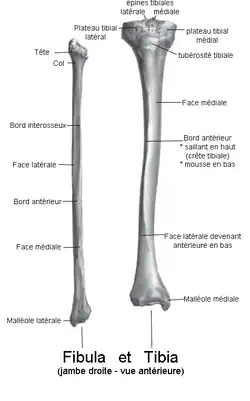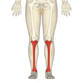 En anatomie humaine, le tibia est un os long pair du membre inférieur. Il constitue avec la fibula le squelette de la jambe. C'est le deuxième plus long os du corps humain, le plus long étant le fémur.