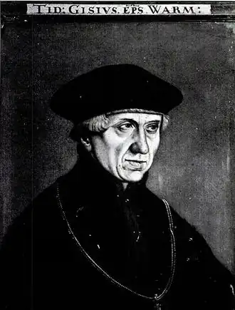 Tiedemann Giese (-, à Heilsberg), évêque de Varmie issu d’une famille patricienne de Dantzig, fut l'un des proches de Nicolas Copernic. Il combattit les chevaliers teutoniques.