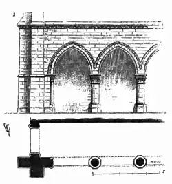 Le point d’intersection de deux arcs d'ogive se dénomme «tracé en ogive», «voûte en tiers-point».
