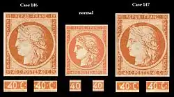 Le , est émis le troisième timbre-poste non dentelé de France. Il est au type Cérès, d'une valeur de 40 centimes et de couleur orange. L'émission d'un 40 centimes bleu était prévue au , mais a été retardée pour affecter le bleu au timbre de 20 centimes.