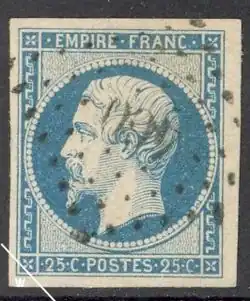 Le , est émis un timbre non dentelé de 25 centimes de couleur bleu représentant l'empereur Napoléon III et légendé « EMPIRE FRANC ». Il remplace le timbre de mêmes couleur et valeur au type Prince-Président légendé « REPUB FRANC » émis en décembre 1852.