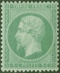 Certains timbres à l'effigie de Napoléon III ont connu une histoire prolongée après la chute de l'Empire, en 1871-1872, en raison du changement de tarif du : notamment le 5 centimes vert type Napoleon III dentelé de 1863.