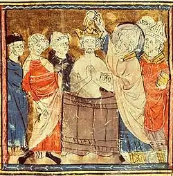Le , dans la courte série De la Gaule à la France avec deux timbres émis en 1996 et 1997, est émis un timbre de 3 FRF pour les 1500 ans du baptême de Clovis, roi des Francs. L'illustration reproduit l'œuvre présente dans les Grandes Chroniques de France, composées aux XIIIe et XIVe siècles à la suite d'une commande du roi de France Louis IX.