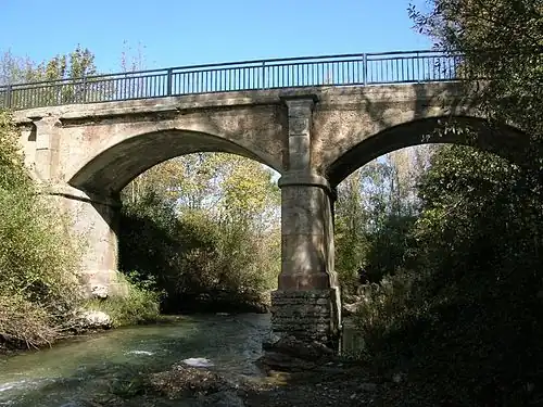 Il passe par un dénivelé énorme jusqu'à arriver à Ezquerra, où elle perd de sa vitesse dans son débit, traversant des matériaux conglomérés plus récents que l'Oligocène (Ère tertiaire). À son passage par San Miguel de Pedroso[notes 3] se trouve un pont qui a été très coûteux à construire puisque chaque fois qu'on finissait les travaux, les crues de la rivière le détruisaient. C'est la raison pour laquelle les ouvriers l'ont surnommé le pont du Diable.