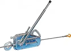 Cet appareil comprend un mécanisme, actionné par leviers, formé d’une association en série de deux paires de mâchoires fonctionnant en alternance pour permettre le déplacement du câble sur une longueur quasi-illimitée et pour des charges comprises entre 0 et 12 tonnes.