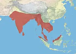 On le trouve dans le sud-est de l'Asie, depuis le Pakistan à l'ouest, jusqu'au sud de la Chine, à Sumatra et sur l'île de Java. Contrairement à sa dénomination spécifique, philippinus, cette espèce ne vit pas dans les Philippines[4]. L'aire de répartition de l'espèce avoisine les 6 340 000 km2 selon BirdLife International[5].