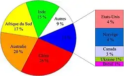 En 2013, les premiers pays producteurs de titane, en tonnes, sont[25]