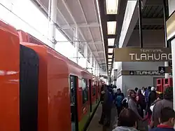 La station Tláhuac est mise en service le , lors de l'ouverture à l'exploitation de la première section de la ligne 12 du métro de Mexico, longue de 24,5 km entre les terminus Mixcoac et Tláhuac[1]. C'est une station établie en surface qui dispose de trois voies et de deux quais centraux. Le nom Tláhuac peut signifier Tierra que emerge (terre qui émerge) en rapport à sa position entre les anciens lacs Xochimilco et Chalco (es). La représentation du logo de la station se réfère à une autre signification de Tláhuac qui serait le lieu ou l'on récolait une algue spécifique à ces lacs[3].