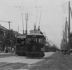 En , les compagnies fusionnèrent sous le nom de Chemin de fer de Tokyo, puis le gouvernement de la ville de Tokyo racheta le réseau en , qui devint le Tramway électrique municipal de Tokyo (ou Tokyo Shiden), puis, en 1943, le Tramway électrique de l'agglomération de Tokyo (Tokyo Toden), lorsque la ville a été fusionnée avec la préfecture de Tokyo pour former la préfecture métropolitaine de Tokyo[2].