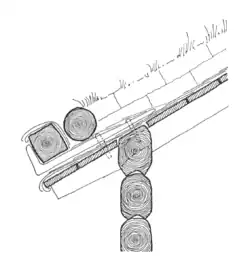 Pour rester en place, le gazon doit être pris en charge par de fortes poutres le long de la corniche. Ces tasseaux ou poutres (norvégien : torvvol) ont une grande variété de formes et de taille, en fonction de la qualité et de l'état du bâtiment, et selon la tradition locale. L'équivalent anglais du terme serait turf log.