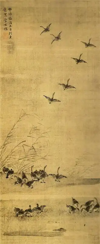 - Les Oies sauvages, encre sur soie (111,4 × 44,5 cm).