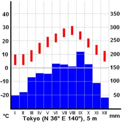 - ↑ 東京 平年値(年・月ごとの値)主な要素, Agence météorologique du Japon.