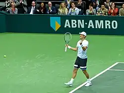 En février, au tournoi ATP 500 de Rotterdam, il atteint la finale en battant Andreas Seppi, Nicolas Mahut, Jerzy Janowicz (69-7, 6-2, 6-4) et le Letton Ernests Gulbis (6-3, 6-2)[13]. Il s'impose contre Marin Čilić facilement (6-4, 6-2) après avoir battu qu'un seul top 20 durant sa semaine. Avec cette victoire, il revient à son meilleur classement de carrière, 5e mondial[14]. Dans la foulée, il atteint la finale de l'Open de Dubaï en battant notamment le Français Jo-Wilfried Tsonga 10e mondial[15]. et Philipp Kohlschreiber (7-5, 7-5) dans le dernier carré. Mais perdant contre Roger Federer (6-3, 4-6, 3-6) dans un match à rebondissements et avoir pris la première manche[16].