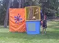 Un joueur volontaire s'assoie sur le siège basculant, pendant qu'un autre joueur tente de viser la cible. Lorsqu'une balle atteint la cible, le siège bascule et la personne assise plonge dans l'eau. Pour un effet comique, les volontaires restent généralement habillés en s'asseyant sur le banc.