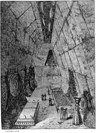 Son plafond est en fausse voûte et l'ensemble est recouvert par un imposant tumulus de terre.
