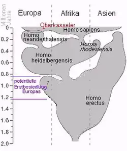 - ↑ W. Henke, R. W. Schmitz, M. Street, Die späteiszeitlichen Funde von Bonn-Oberkassel. In: Rheinisches Landesmuseum Bonn: Roots – Wurzeln der Menschheit. 2006, p. 248.