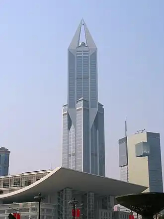 La construction du bâtiment a duré 6 ans de 1997 à 2003 ce qui est considérable (un gratte-ciel nécessite en général une durée de construction de 2 à 3 ans) mais qui est fréquent en Chine pour les immeubles d'une telle hauteur.