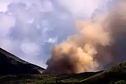 Vue du Tompaluan fumant en juin 2009. | |