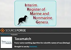 - ↑ (en) Tony Rees, « Taxamatch, an algorithm for near ('fuzzy') matching of scientific names in taxonomic databases », PLOS One, PLoS, vol. 9, no 9, , e107510 (ISSN 1932-6203, OCLC 228234657, PMID 25247892, PMCID 4172526, DOI 10.1371/JOURNAL.PONE.0107510).