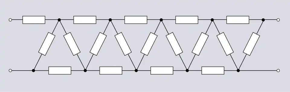 On peut voir toutes ces topologies comme des sections de topologie en échelle. Les sections plus longues seraient décrites comme une topologie en échelle. On analyse et on caractérise souvent ces types de circuits en termes de réseau à deux ports[6].