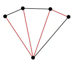 - ↑ Spanning forest. A forest of trees in which every node of the graph is visited by one of the trees.