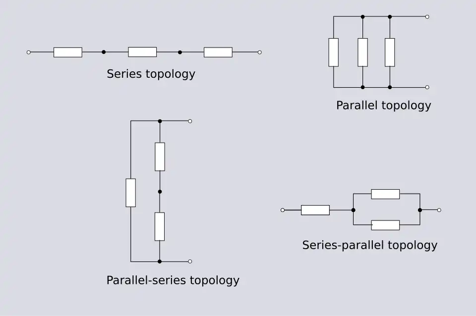 À noter que la topologie en série-parallèle ('parallel-series' sur le diagramme) est une autre représentation de la topologie Delta discutée plus loin.