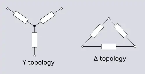 Les topologies Y et Δ sont importantes en analyse de réseau linéaire, car elles constituent les réseaux à trois terminaux les plus simples possibles. Une transformée Y-Δ existe pour les circuits linéaires. Il s'agit d'une transformation importante, car certains réseaux ne peuvent être analysés en termes de combinaisons en série et parallèles. On rencontre souvent ces réseaux dans les circuits de puissance triphasés puisque ce sont les deux topologies les plus courantes pour les enroulements de moteur ou de transformateur triphasés.