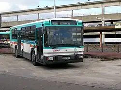 Le bus 421 et en arrière-plan, le parking de la gare RER.