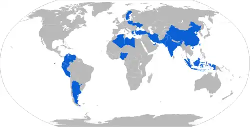 Planisphère avec les pays équipés des torpilles A244-S en bleu