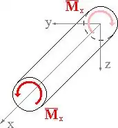 Pour être plus précis, la torsion est la sollicitation subie par un corps soumis à l'action d'un couple de forces opposées agissant dans des plans parallèles et dont l'élément de réduction est un moment de force agissant dans l'axe de la poutre.