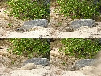 Tortue marine creusant un trou pour pondre sur Île Heron en Australie