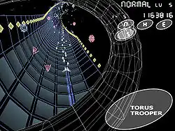 Torus Trooper est un shoot them up qui tient du tube shooter. Le joueur contrôle un vaisseau, en vue arrière, qui évolue à l'intérieur de tubes et semi-tubes, sorte de tores abstraits, générés aléatoirement.