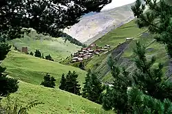 Omalo est le village principal, situé sur un plateau pentu au centre de la région ; il dispose d'un aérodrome et des hélicoptères permettent à des touristes aisés de se déplacer[2]. L'accès routier courant, six mois par an, se fait par Telavi (Kakhétie) et le col d'Abano (en) (2826 m.).