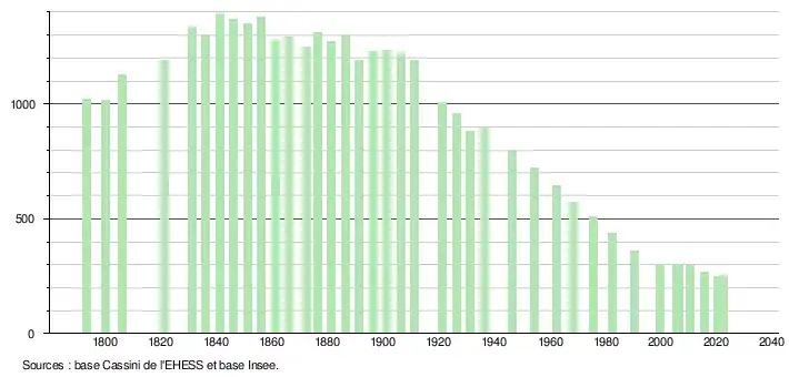 De 1962 à 1999 : population sans doubles comptes ; pour les dates suivantes : population municipale.
