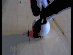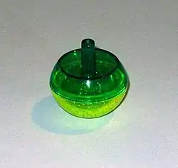 En ralentissant, la toupie perd de sa stabilité et roule sur le côté comme une toupie classique.