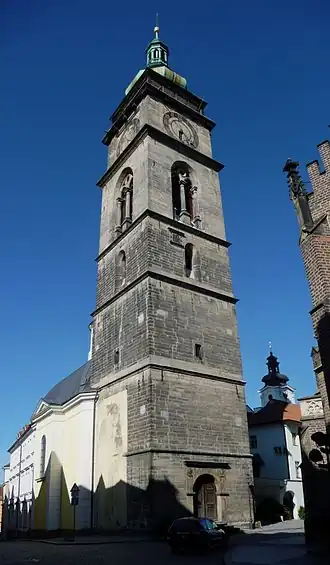 Le , la construction de la Tour Blanche a commencé au milieu du côté ouest de la Grande Place à Hradec Králové. La construction a été financée par des dons de charité des citoyens de la ville. Au cours des six années suivantes, une tour de 72 mètres de haut a été construite.