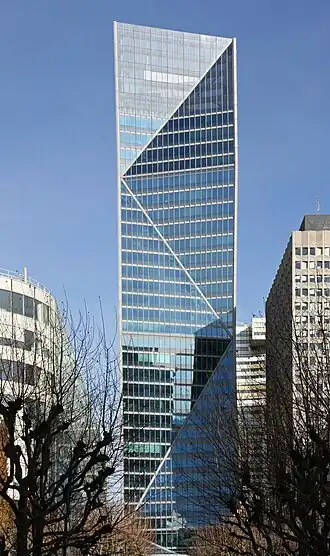L'accent est mis sur les aspects écologique, esthétique et pratique, reliant la rue pour en faire une place vivante et commerciale. L’ensemble immobilier, situé dans la poire historique du quartier d’affaires de La Défense, en arrière de l’esplanade et en bordure du boulevard urbain, est composé d’un immeuble de 166 mètres (hauteur depuis le boulevard circulaire) à usage de bureaux de 47 100 m2 SHON, dont 310 m2 de commerces de restauration. Elle peut accueillir plus de 3 000 personnes[2].
