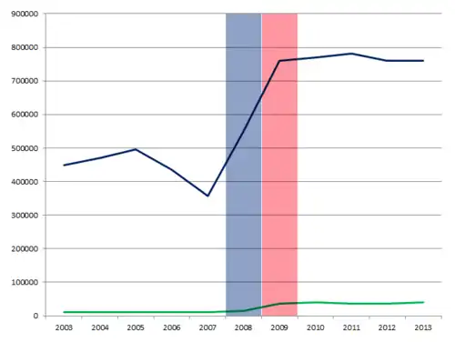 | 2008 | 17,3 millions[22] |